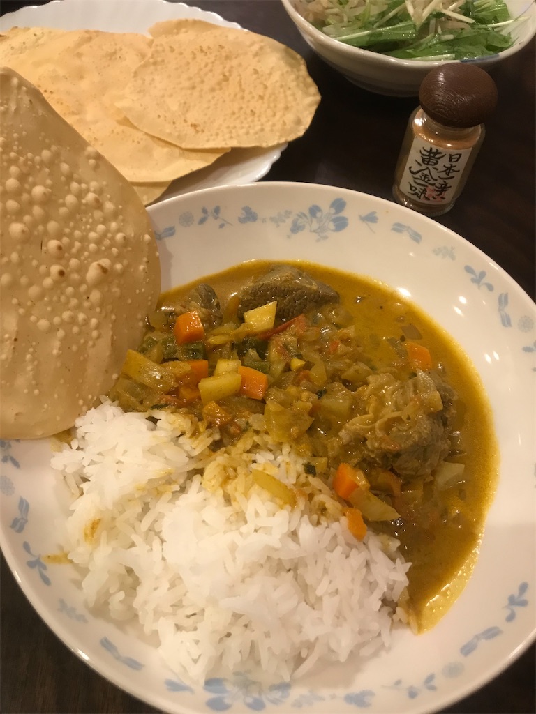 みんな大好きパパド。砕いてご飯に混ぜるのは私だけで、カレー食べる前にバリバリやってます。